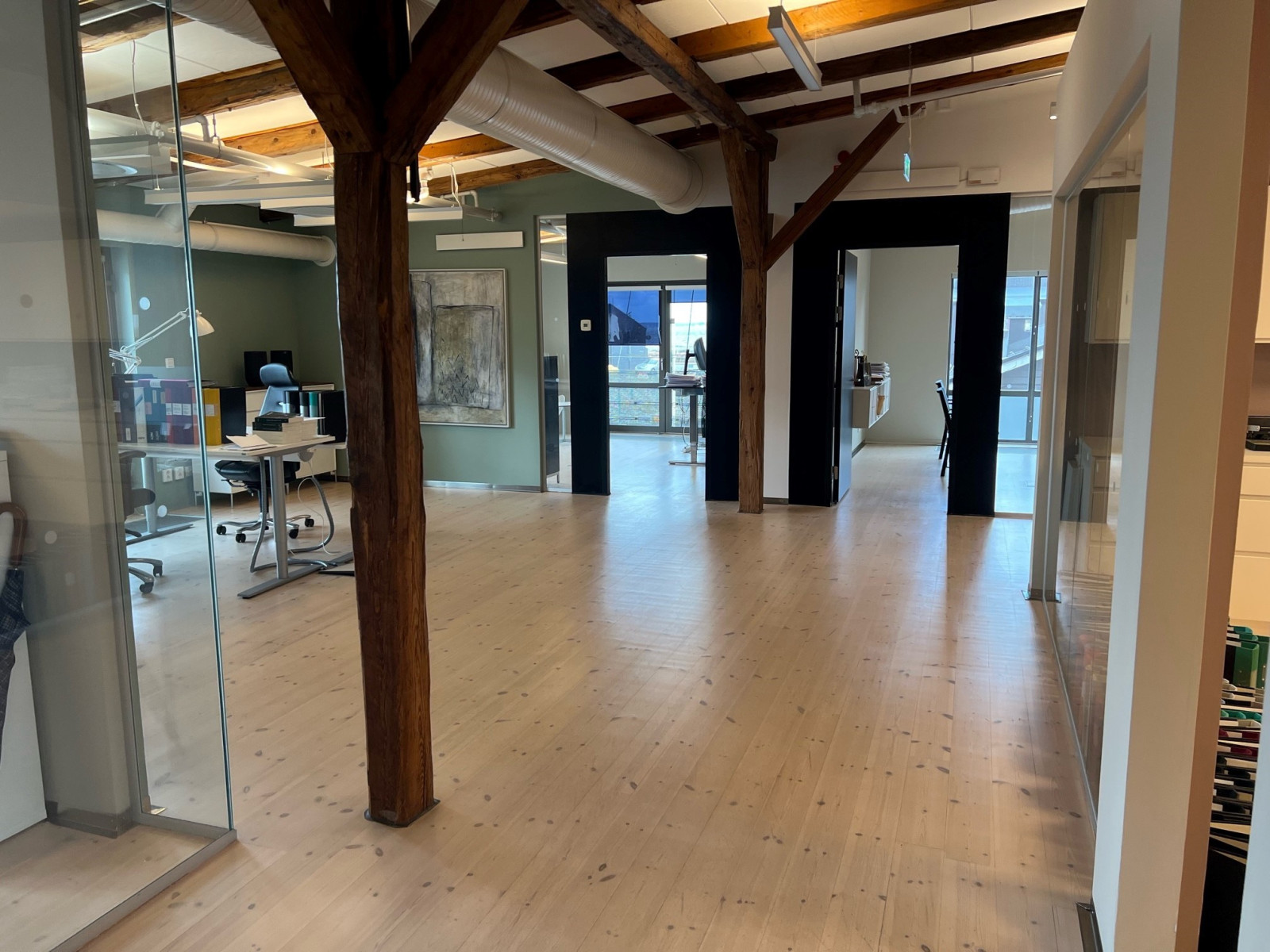 Idag finns det 13 - 14 st enskilda kontorsrum samt ytor för mindre öppna kontorslandskap.
