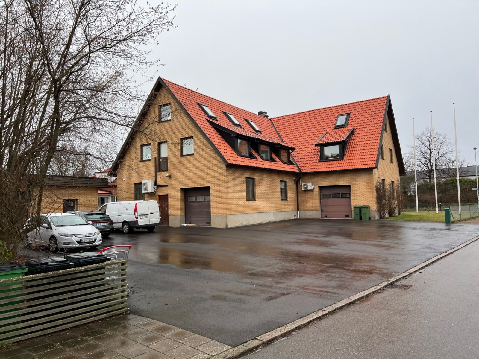 Lager i markplan samt halv trappa ner i källare samt två garage på ca 30 respektive 40 kvm.